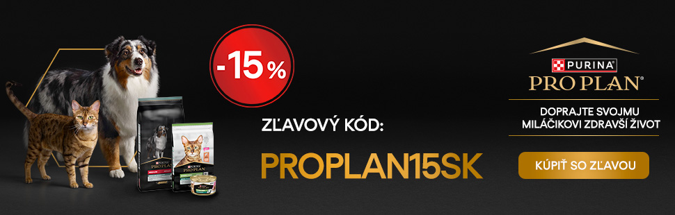 Pouze do konce listopadu 2025 lze zakoupit vybraná krmiva Purina Pro Plan s 15% slevou! V nákupním košíku je nutné řádně uplatnit slevový kód PROPLAN15SK.