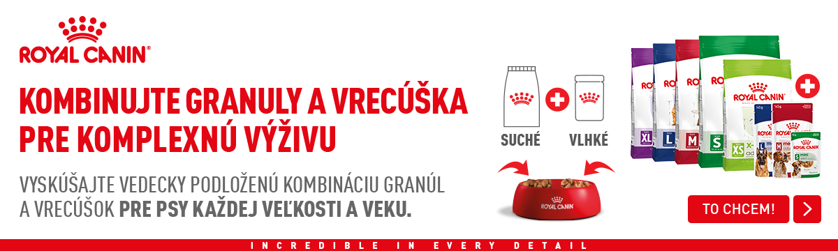 Navštívte aj ďalšie kategórie granúl Royal Canin pre psov: Royal Canin Care Nutrition (riešenie konkrétnych zdravotných problémov psov), Royal Canin Breed Health Nutrition (špecifické granule pre jednotlivé plemená psov) a Royal Canin Veterinary (terapeutická krmiva na odporúčanie veterinára).